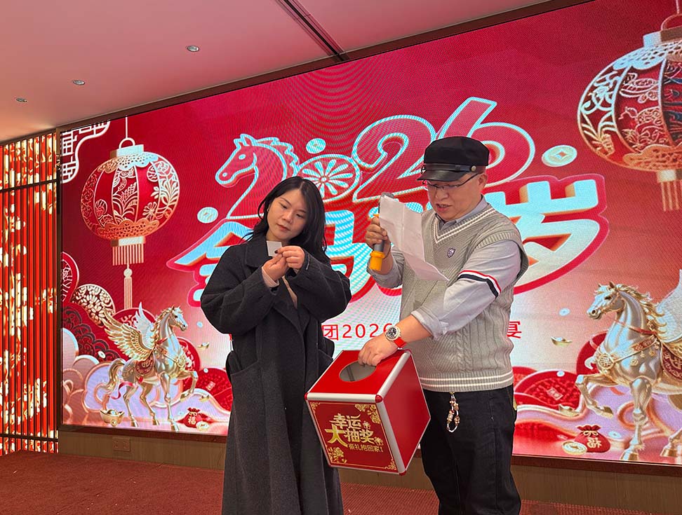 本次年会的核心环节——幸运抽奖,成为整场活动的欢乐焦点,贯穿活动全程,设置鼓励奖、三等奖、二等奖、一等奖及特等奖多个奖项,丰厚奖品承载着集团对全体员工的关怀与期许。